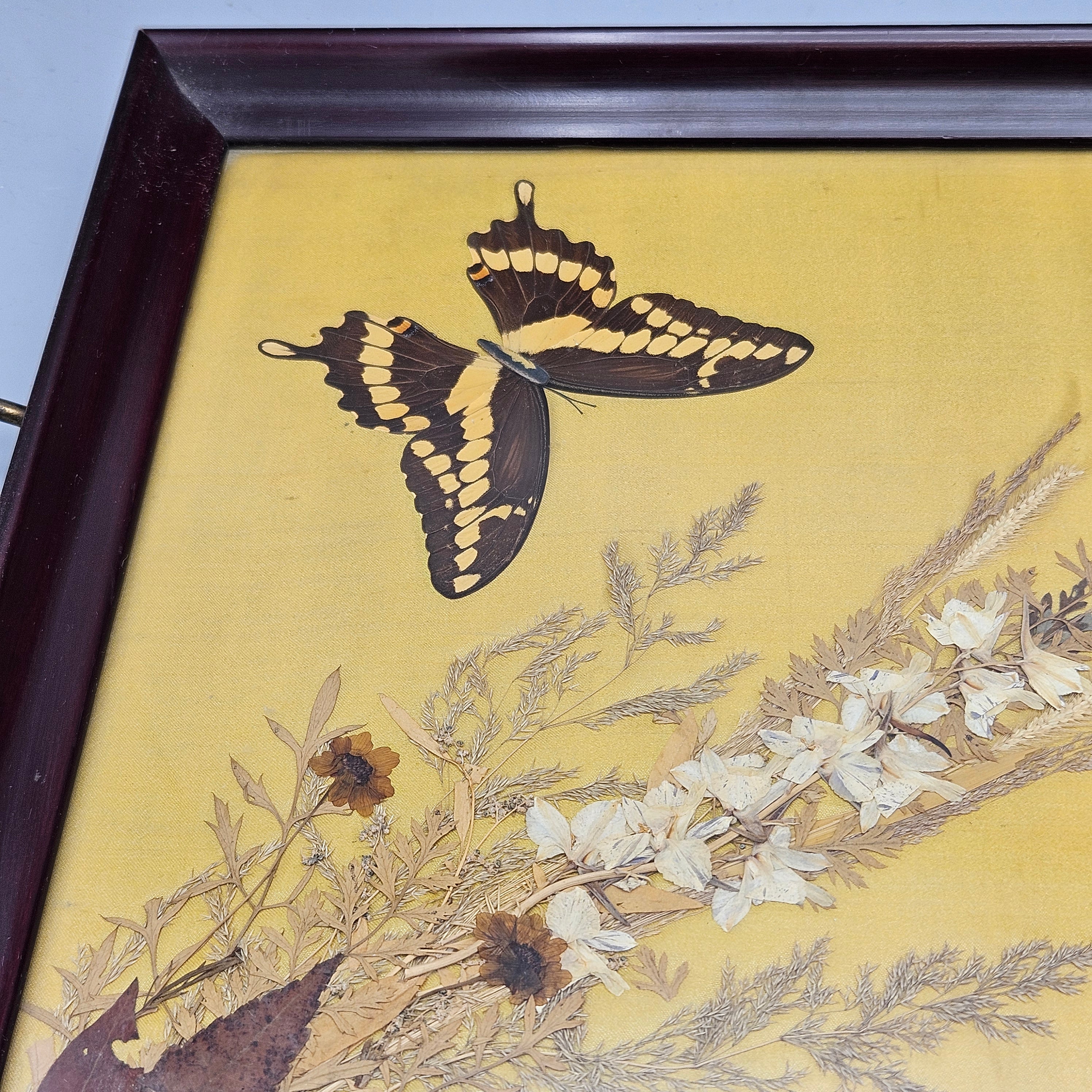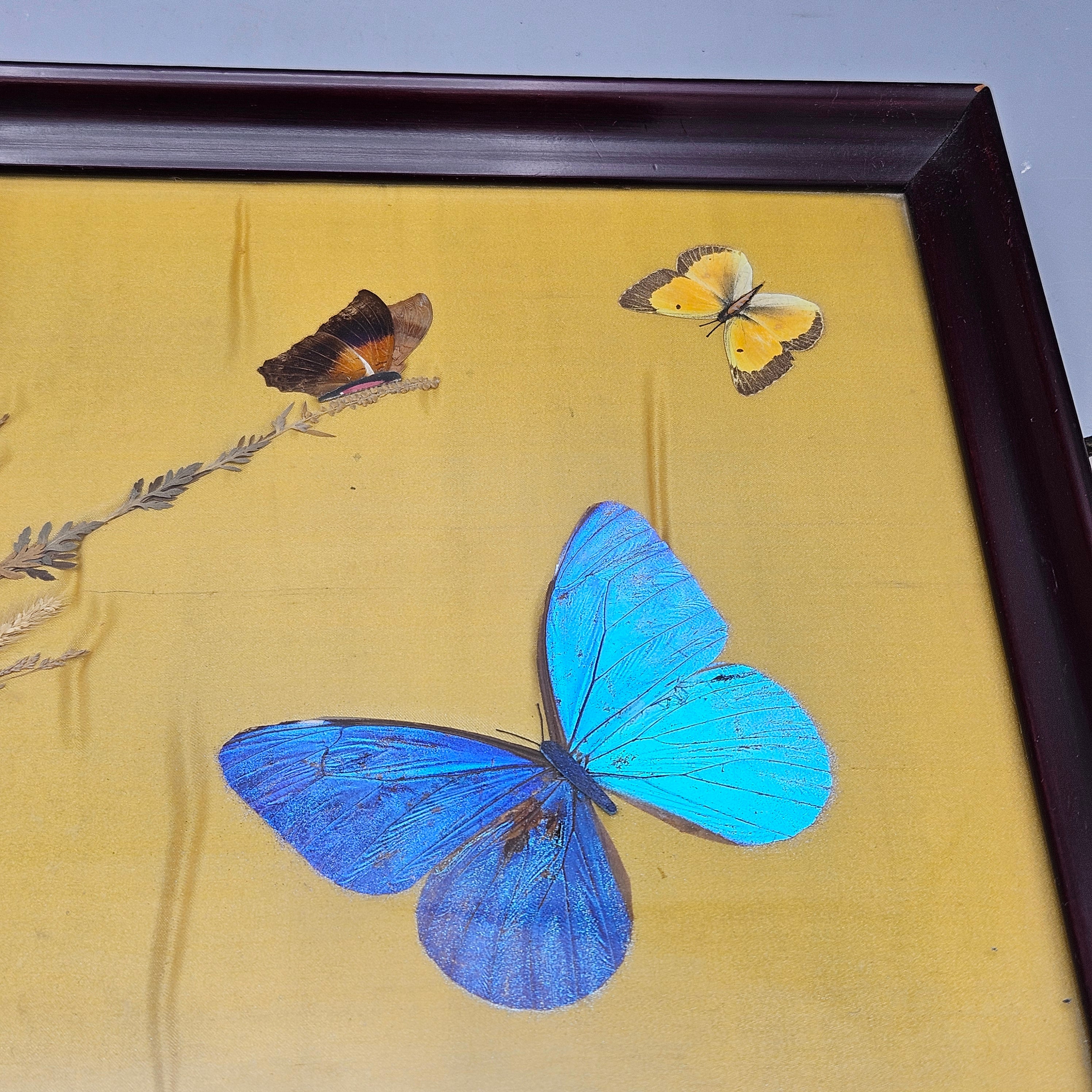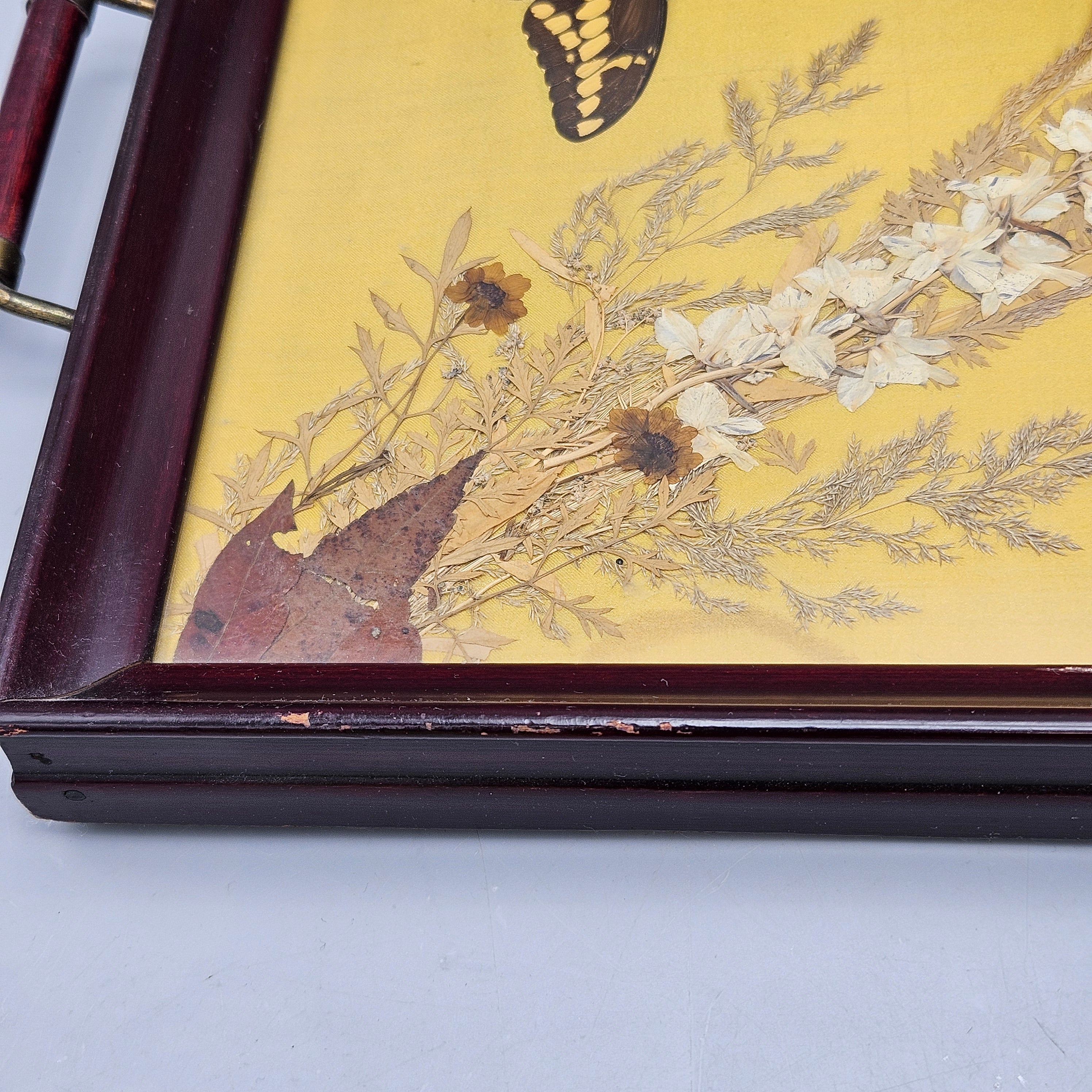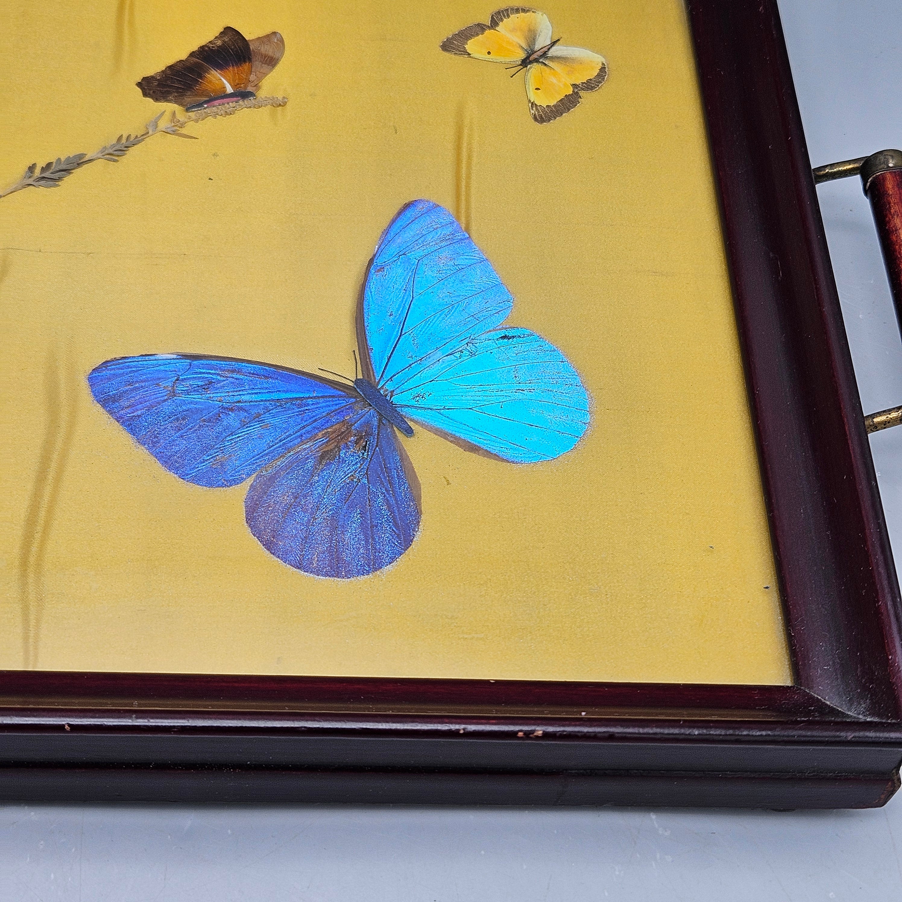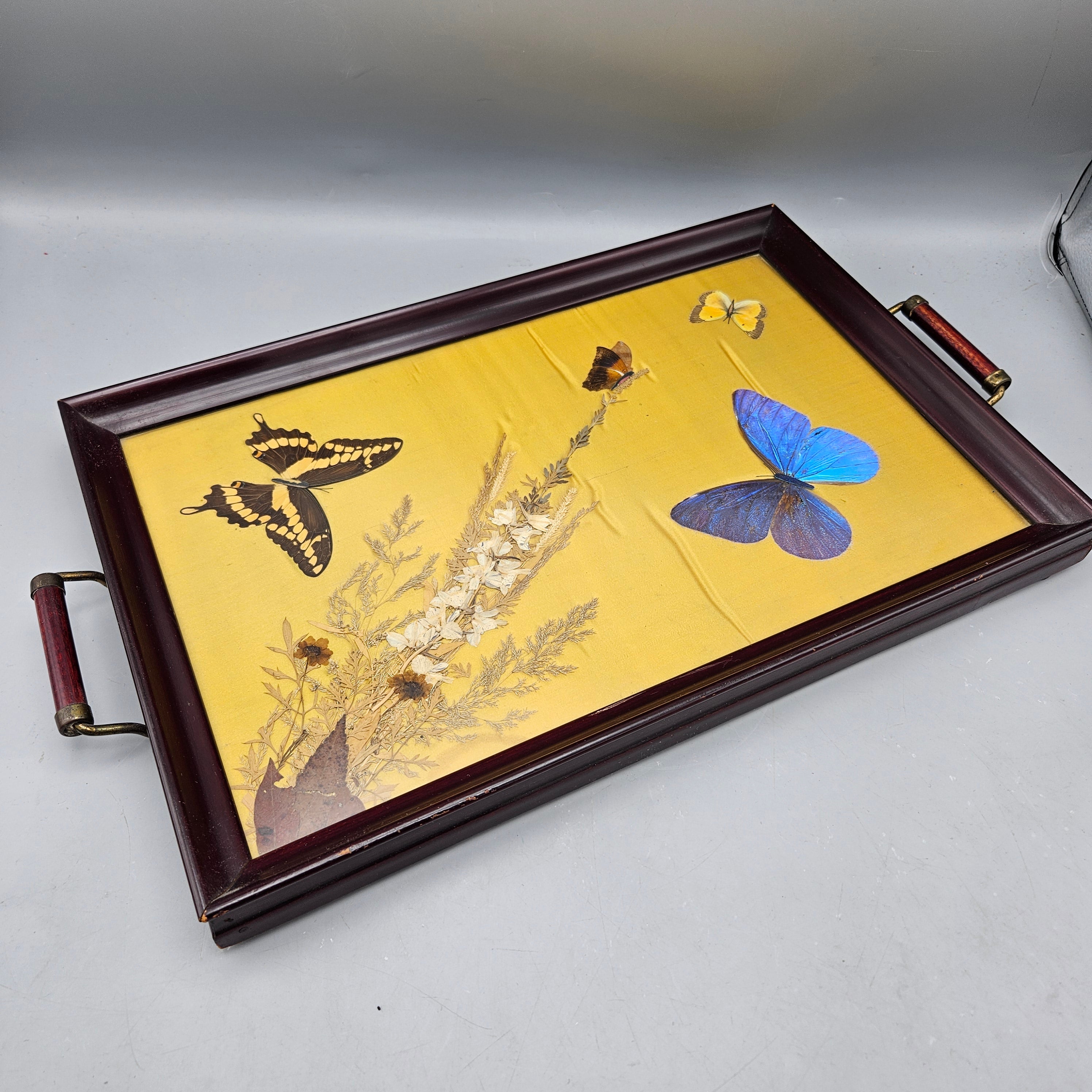 Vintage Serving Tray with Iridescent Butterfly