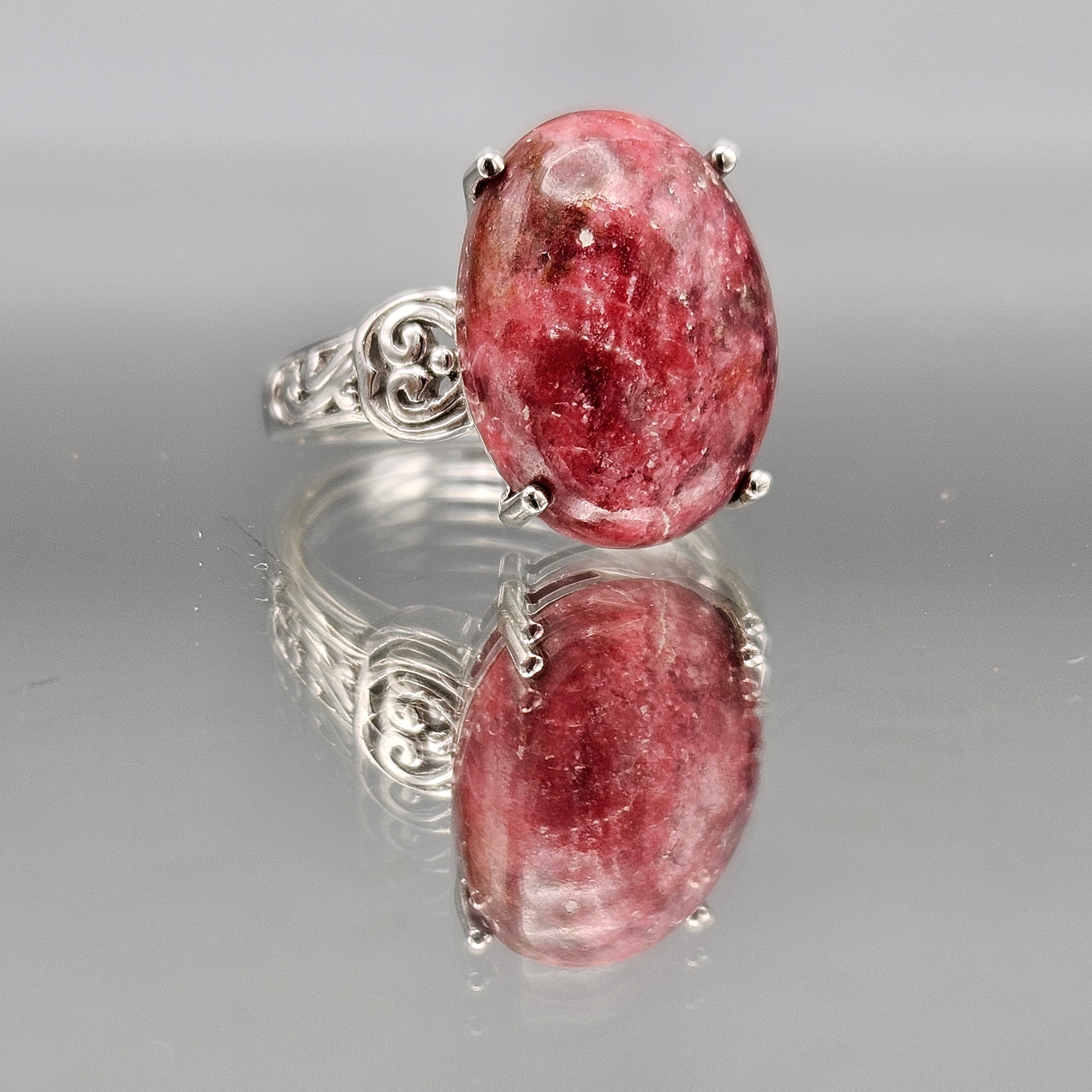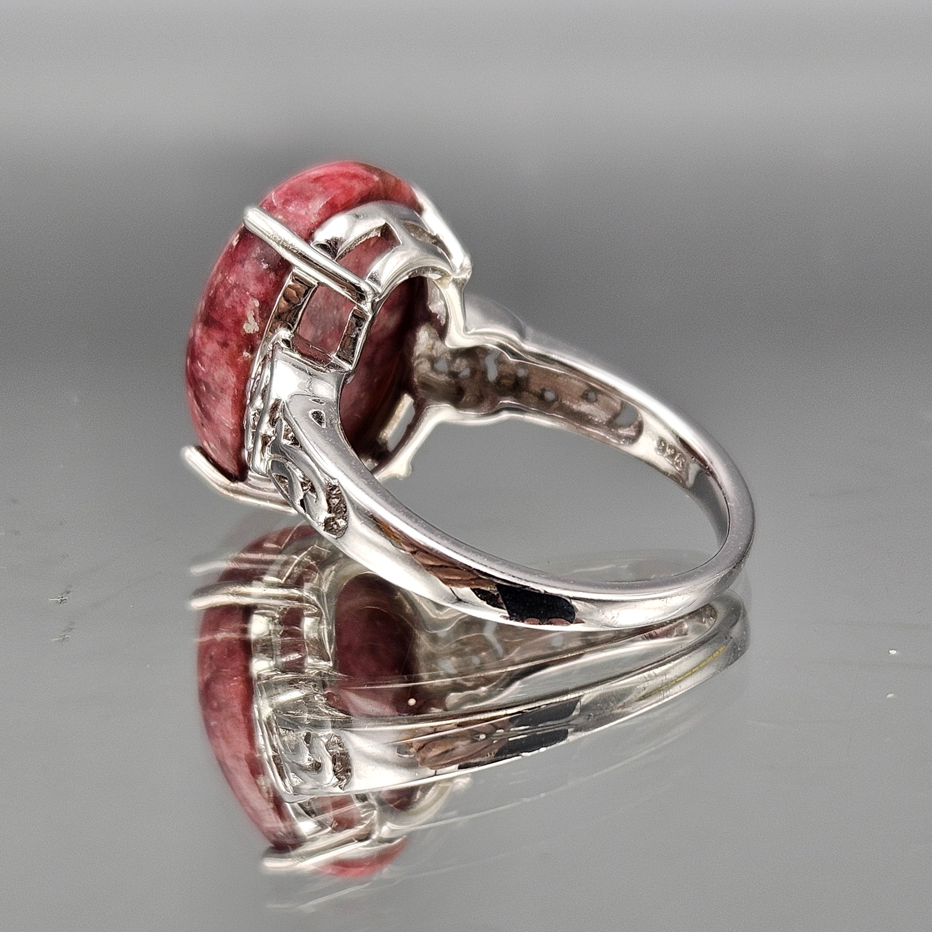 Vintage Sterling Silver Dark Pink Stone Ring - Size 9