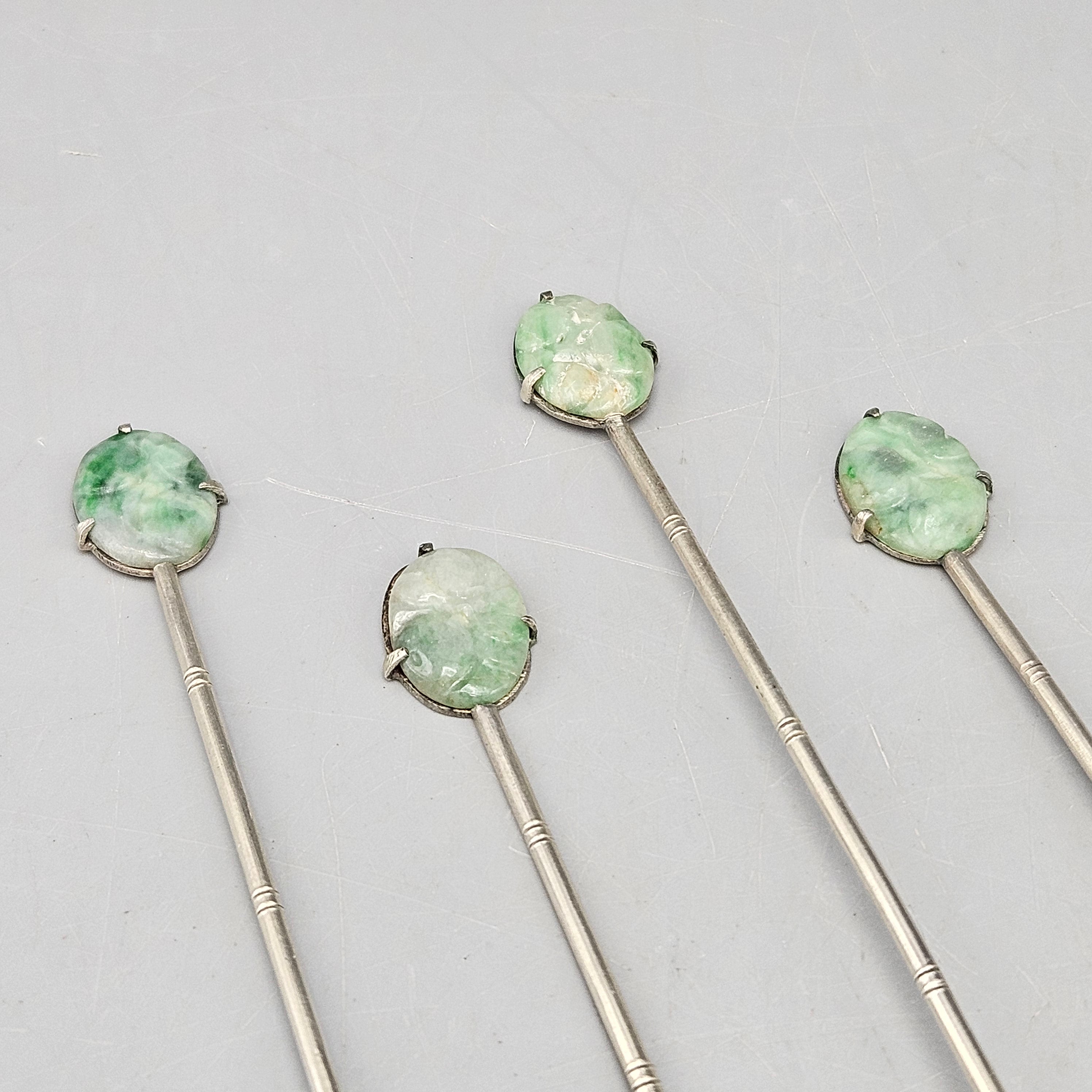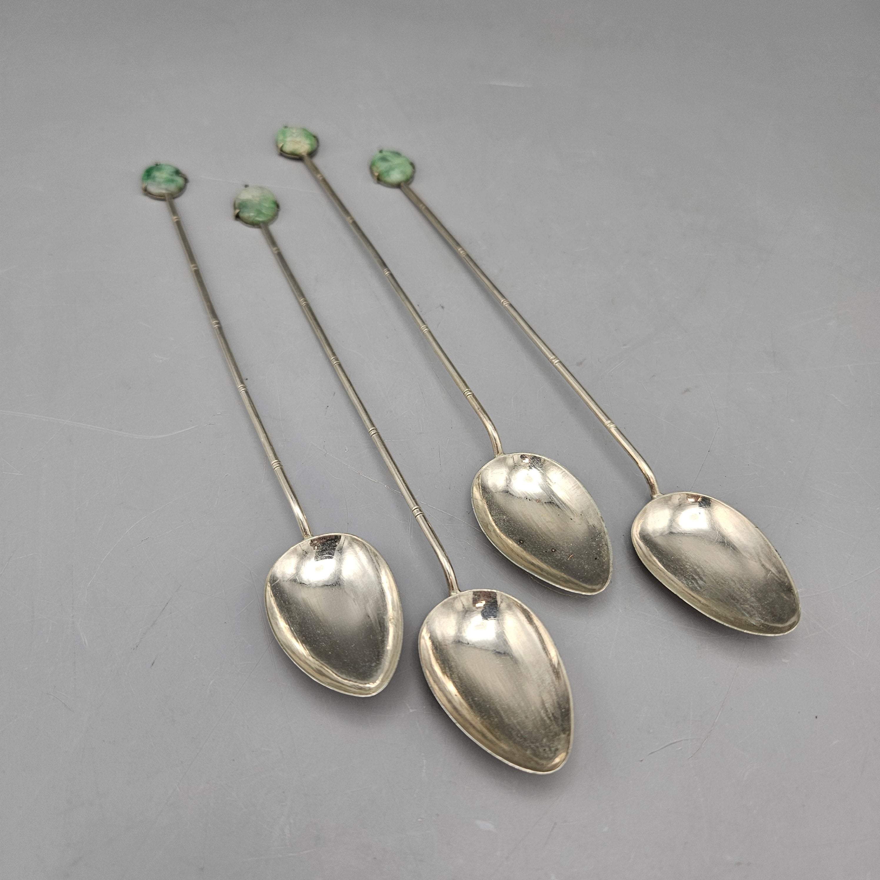 Vintage Sterling Silver Iced Tea Spoons with Carved Jade Finials