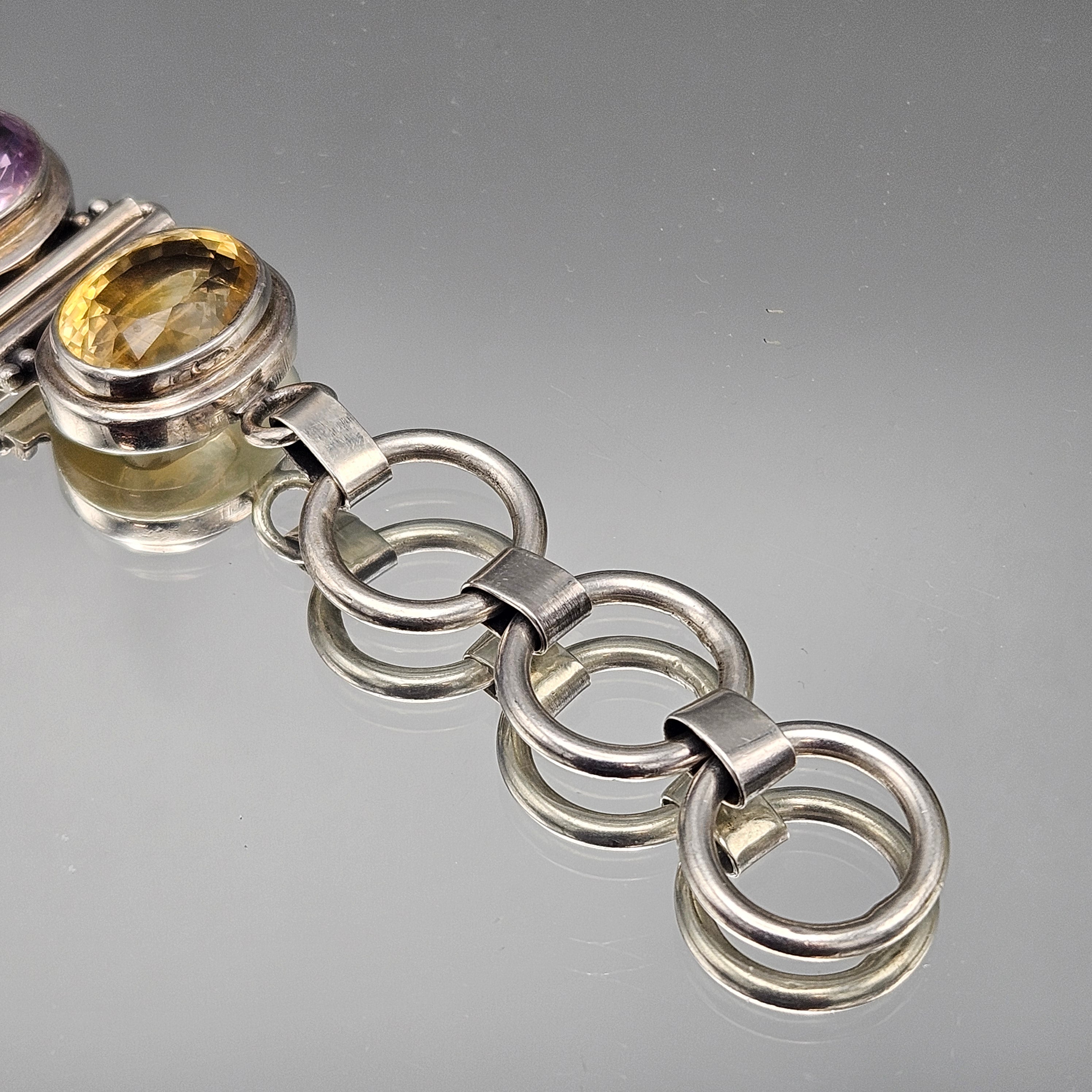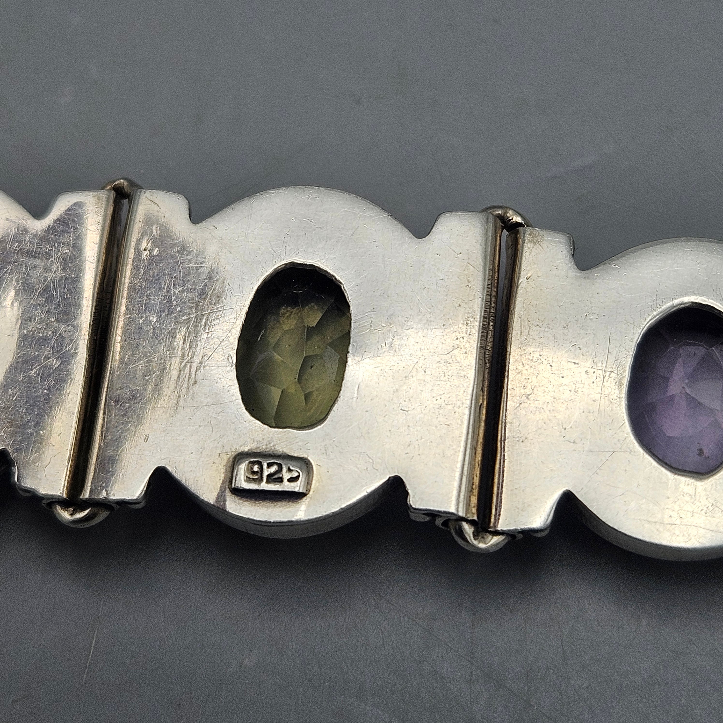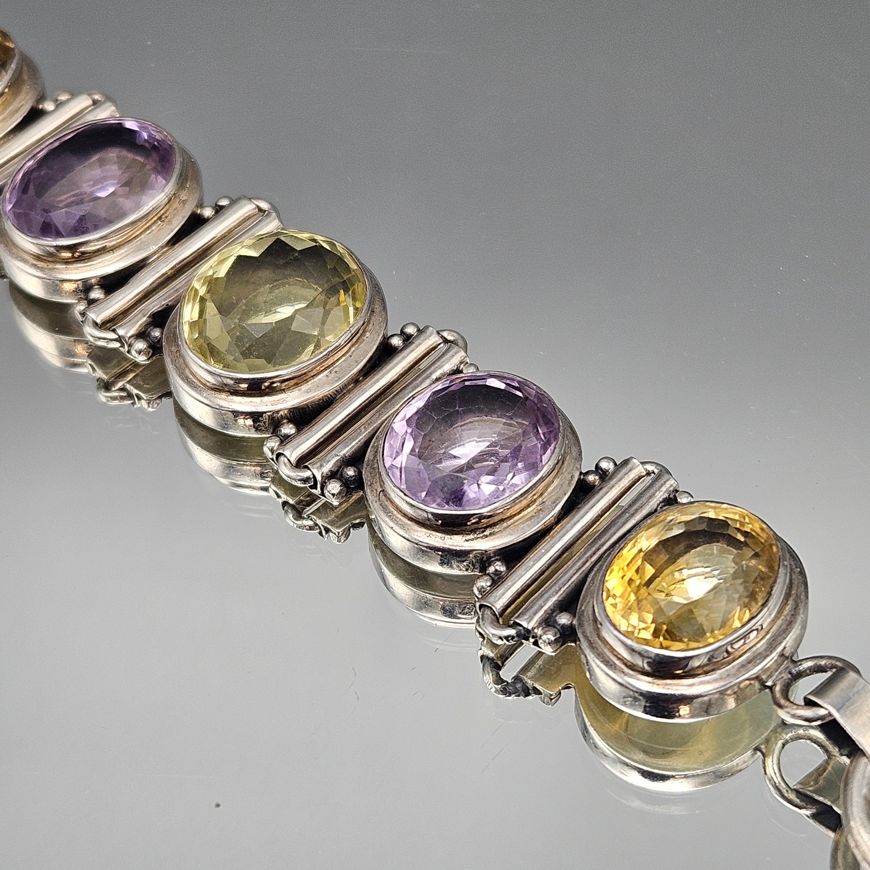 Vintage Sterling Silver Toggle Bracelet with Amethyst and Citrine Gemstones
