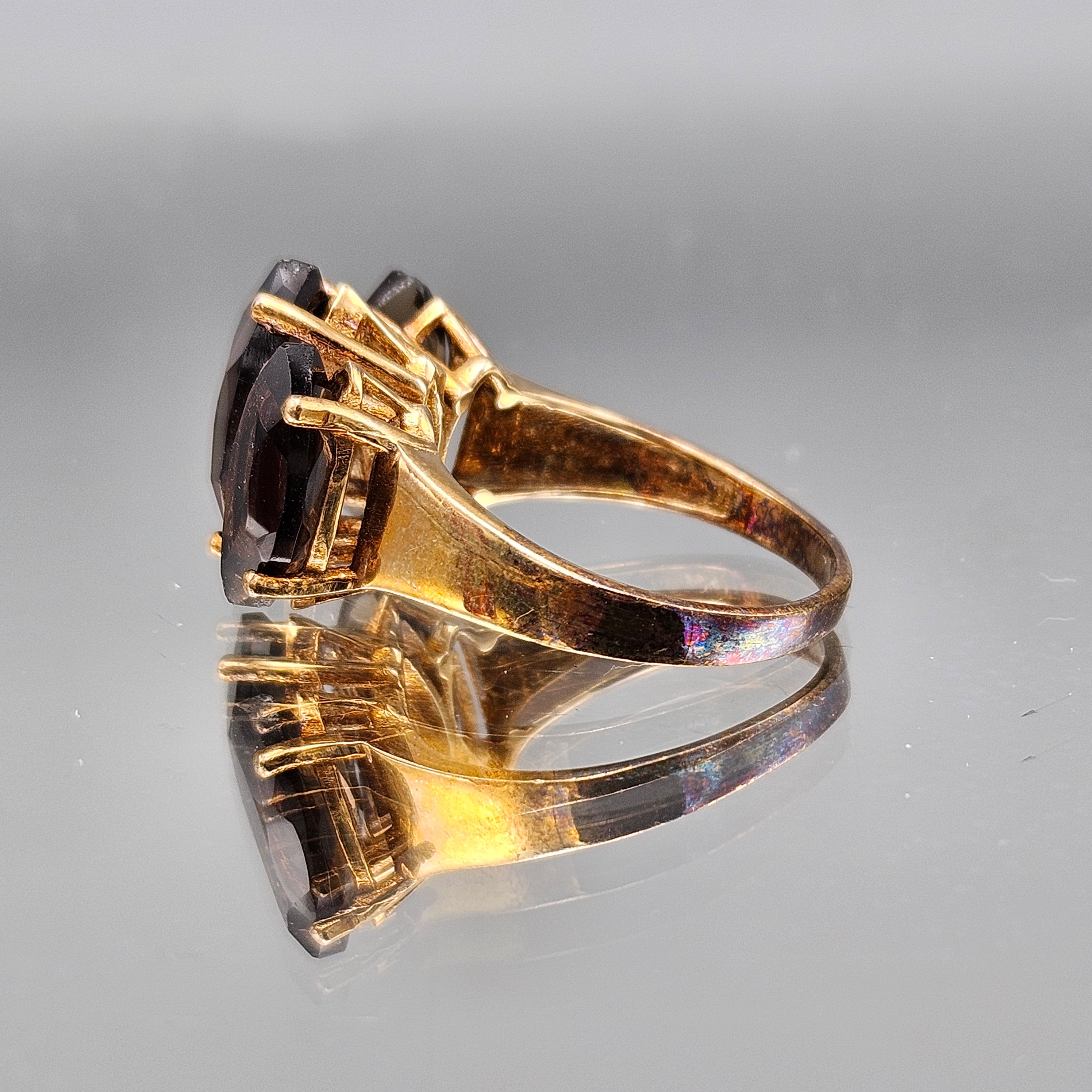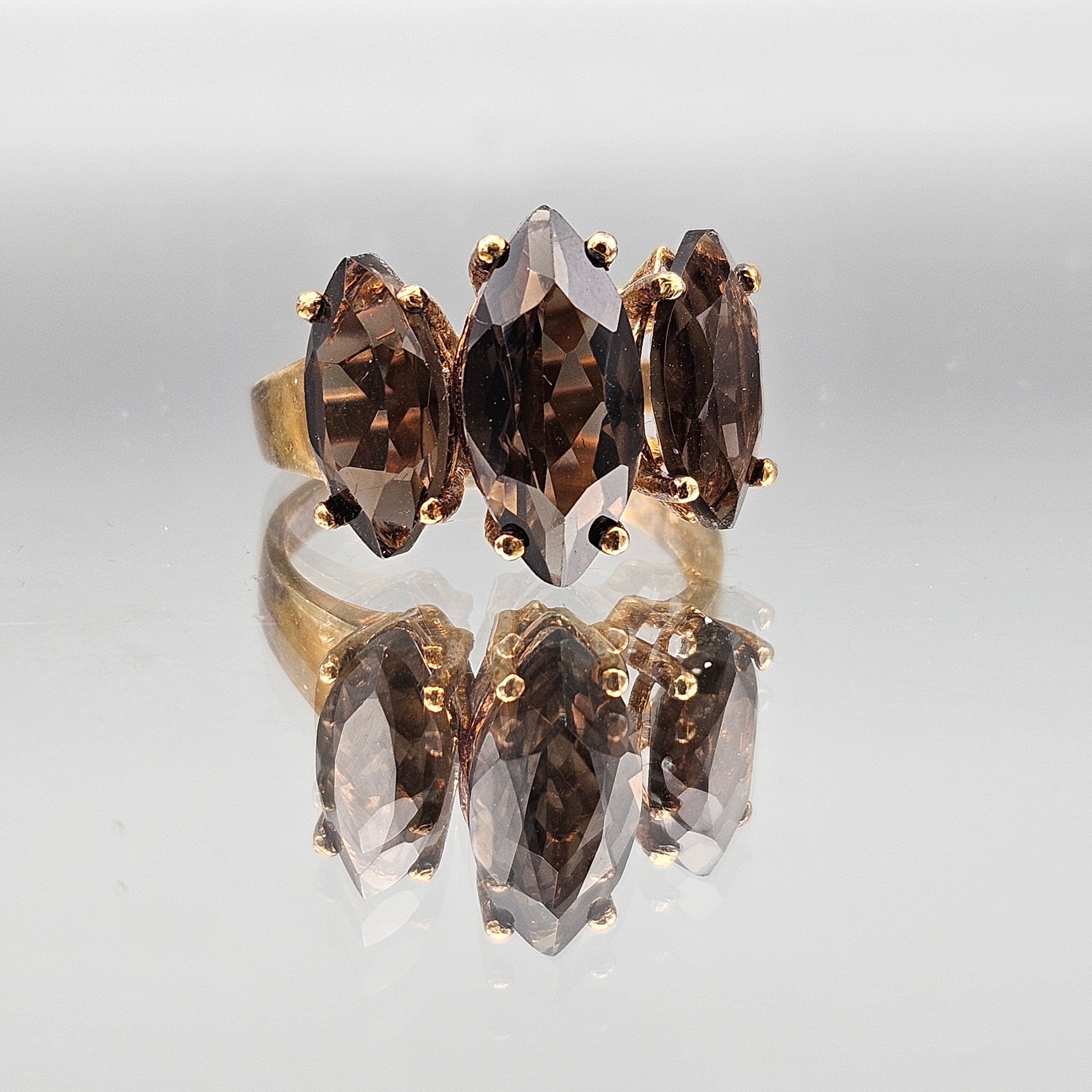 Vintage Sterling Smoky Quartz Cocktail Ring - Size 8.25