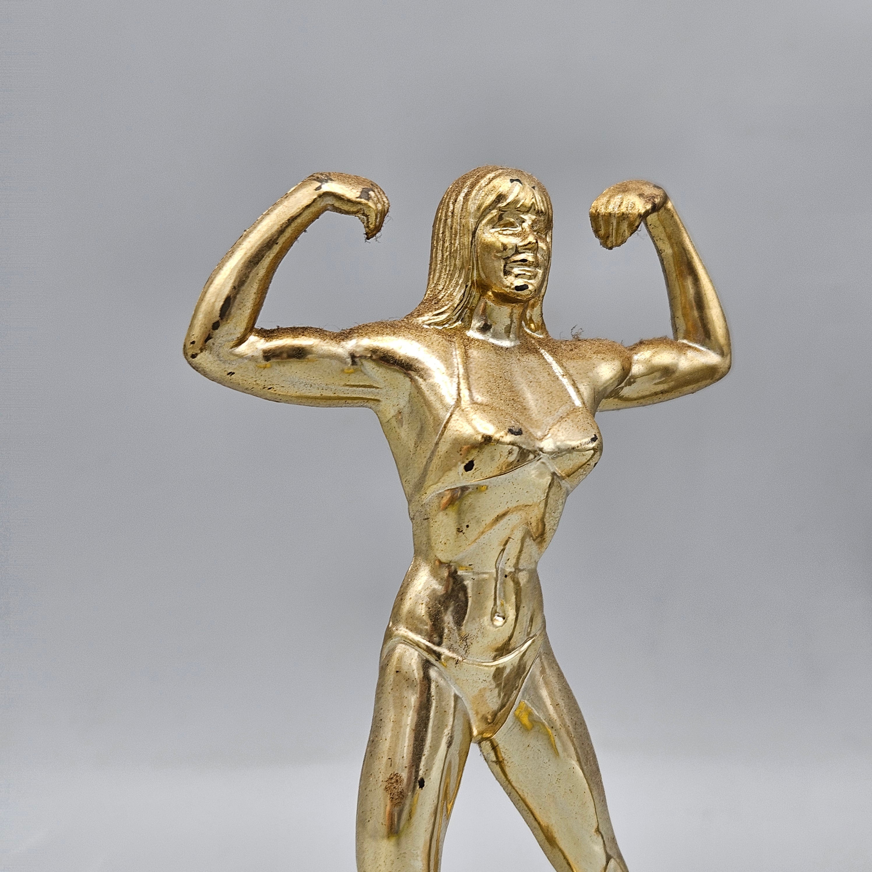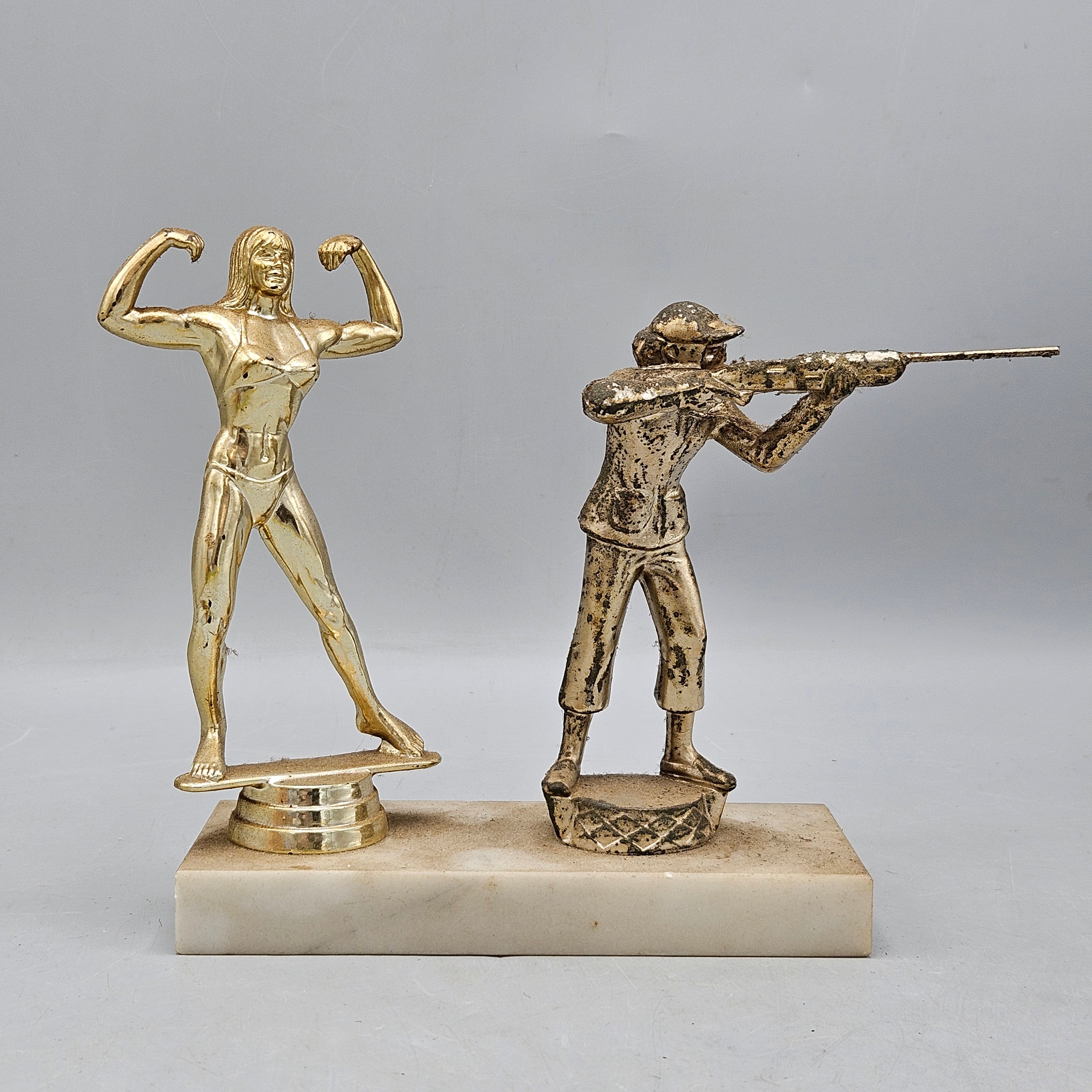 Vintage Trophy with Female Body Builder and Man with Shotgun